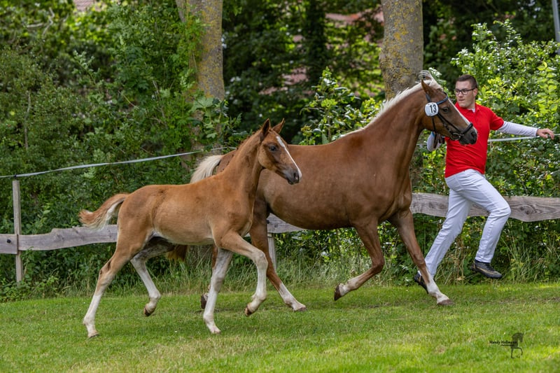 For sale is a promising German Riding Pony stallion, born in May 2025. **Features:** - **Breed:** German Riding Pony - **Color:** Chestnut - **Height:** 145 cm - **Discipline:** Dressage This talented stallion already shows a lot of potential in dressage and impresses with his excellent movement quality, particularly his walk, and his friendly character. He is suitable for both experienced competition riders and ambitious beginners looking for a reliable and eager-to-learn pony with a lot of potential. If you are interested or need further information, please feel free to contact me. Viewings are possible by appointment. We look forward to your message!