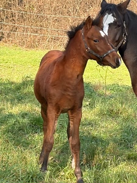 kompaktes Hengstfohlen, sehr zugänglich und interessiert, aus bestem Springblut, Championatsfohlen Vater Mas gue nada- hocherfolgreich im Springsport, doppelt veranlagt, Mutter Verbandprämienstute Guinevere von Der kleine Donnerhall-FS Don`t Worry.