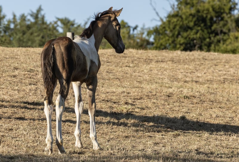 For sale is a German Riding Pony stallion in an exceptional buckskin pinto coat pattern. This beautiful stallion by Gold Garant NRW was born in June 2025 and received the silver medal at the foal inspection in Wickrath. Please feel free to contact me if you are interested or have any further questions.