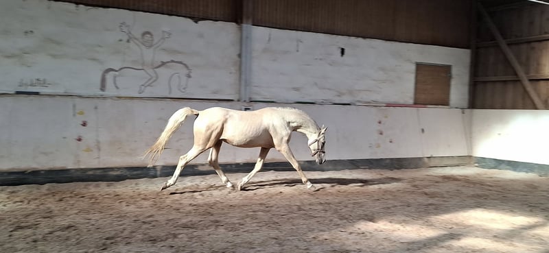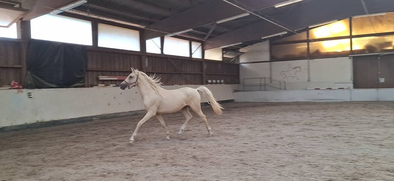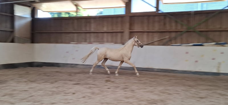 *Keiner vom Filstal* is a 2.5-year-old stallion. He is one of the few offspring of the stallion Dublin. Dublin is a descendant of Donchester, tracing back to Don’t Worry. The stallions are well-known for their strong conformation and temperament. After his first foal crop, Dublin returned to competition and now, at five years old, he successfully competes up to class L. His dam is the state premium mare Reuschbachhofs Jerry Hall. She descends from Molenhorns Pasja. On the dam’s side, there is also the premium mare Reuschbachhofs Julia Stegner, who is already a broodmare and carries in her pedigree names like Golden Rock and Hesseteichs Golden Dream. This is a stallion with a solid pedigree. Through his parentage, a double-licensed young stallion is developing, expected to reach full height. *Keiner*, as we call him, is well-behaved, familiar with farrier and veterinarian, regularly wormed and vaccinated, and herd-friendly. He is a rather shy and subordinate pony, likely to develop into a children’s pony. Keiner is not for sale out of necessity, as the riding therapy facility has enough ponies in the breeding herd. He is neither a distressed sale nor needs to be sold immediately. We prefer to sell him to breeders who recognize his potential and wish to develop him further according to his quality. He is now longeing willingly and shows good cooperation. Viewing the dam is also possible. Update: He is being prepared for licensing with gentle training. The price will be adjusted accordingly.