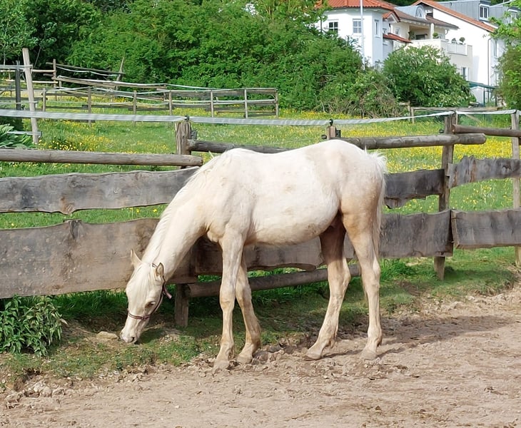 *Der oder Keiner vom Filstal* ist ein 2.5 jähriger Hengst. Er ist einer der wenigen Nachkommen des Hengstes Dublin. Dublin stammt ab von Donchester und geht somit zurück auf Don`t Worry. Die Hengst sind durch ihre Eigenleitstung bekannt. Dublin ist nach seinem ersten Jahrgang ebenfalls zurück in den Sport gegangen und präsentiert sich mittlerweile 5-jährig erfolgreich in Prüfungen bis Klasse L. Seine Mutter ist die Staatprämienstute Reuschbachhofs Jerry Hall. Sie stammt ab über Molenhorns Pasja. Mütterlicherseits die ebenfalls prämierte Reuschbachhofs Julia Stegner, die bereits Hengstmutter ist, und in ihrem Pedigree Namen wie Golden Rock und Hesseteichs Golden Dream trägt. Ein Hengst also mit einer guten Abstammung. Über die Veranlagungen der Eltern wächst hier ein doppelveranlagter Junghengst heran, der sich ins Endmaß wächst. *Keiner* wie er bei uns heißt ist brav, kennt Hufschmid und Tierarzt ist regelmäßig entwurmt und geimpft und herdenverträglich. Keiner ist ein eher schüchternes und rangniedriges Pony, da sicher zu einem Kinderpony heranwächst. Keiner wird verkauft, da auf der Reittherapieanlage genügend Ponys in der Nachzucht zur Verfügung steht. Er ist weder ein Notverkauf, noch muss er sofort umziehen. Er wird gerne an Aufzüchter verkauft, die ein gute Pony erkennen und der Qualität entsprechend fördern möchten. Mittlerweile ist er anlongiert und zeigt sich willig. Ein anschauen der Mutter ist ebenfalls möglich. Update: Er wird zur Körung vorbereitet und daher schonend gearbeitet. Der Preis wird sich angleichen.