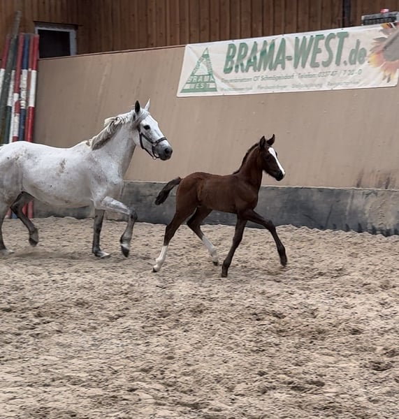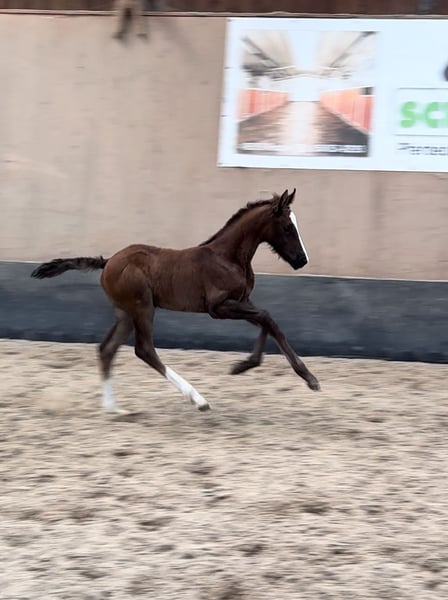 Duits rijponyveulen zoekt pleeghanden. Te koop is een veelbelovend Duits rijponyveulen, geboren in 2024 (maart). Deze elegante donkere vos maakt indruk met zijn indrukwekkende grootte, zijn schofthoogte wordt geschat op 148 cm. Zijn uitmuntende dressuurkwaliteiten zijn prioriteit nummer 1. Zijn nobele verschijning en talent maken hem een ideale partner voor ambitieuze ruiters. De hengst is zeer leergierig en heeft uitstekende basisgangen, waardoor hij een echte blikvanger kan zijn in elke dressuur- of springpiste. Als je op zoek bent naar een jonge, getalenteerde dressuurpony of gewoon een partner voor het leven die indruk maakt met zowel zijn uiterlijk als zijn prestaties, dan is deze hengst precies goed voor jou. Meer informatie over de afstamming via telefoon / WhatsApp. Bezichtiging is mogelijk op afspraak. Als je interesse hebt, horen we graag van je!