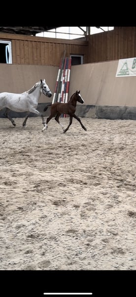 German riding pony colt looking for fostering hands. For sale is a promising German Riding Pony colt, born in 2024 (March). This elegant dark chestnut impresses with his impressive size, his height is estimated at 148 cm. His outstanding dressage qualities are his number 1 priority. His noble appearance and talent make him an ideal partner for ambitious riders. The stallion is extremely willing to learn and has excellent basic gaits, which can make him a real eye-catcher in any dressage/jumping arena. If you are looking for a young, talented dressage pony or simply a partner for life who impresses with both his looks and his performance, then this stallion is just right for you. More information about the pedigree by phone / WhatsApp. Viewing is possible by appointment. If you are interested, we look forward to hearing from you!