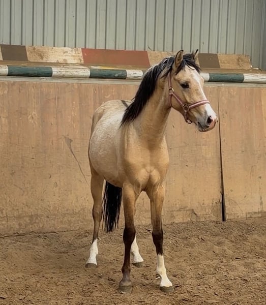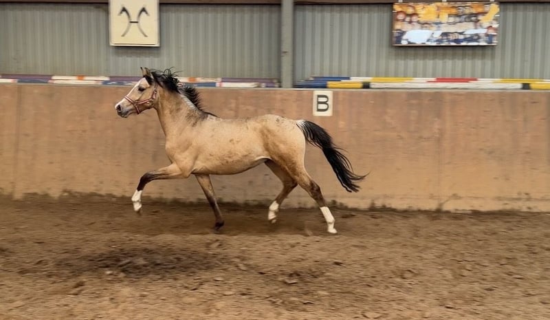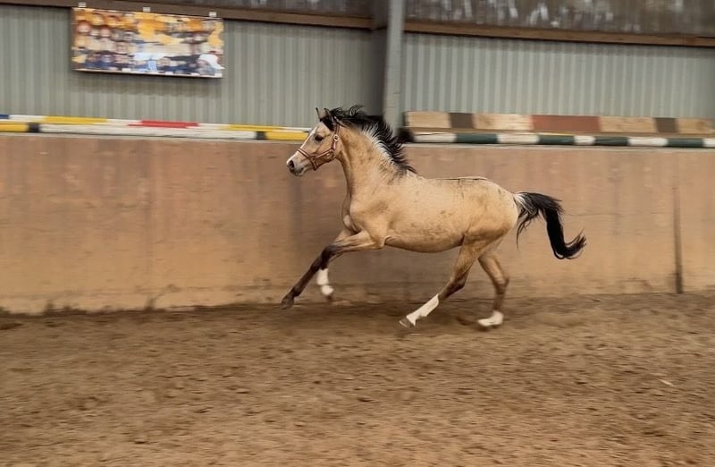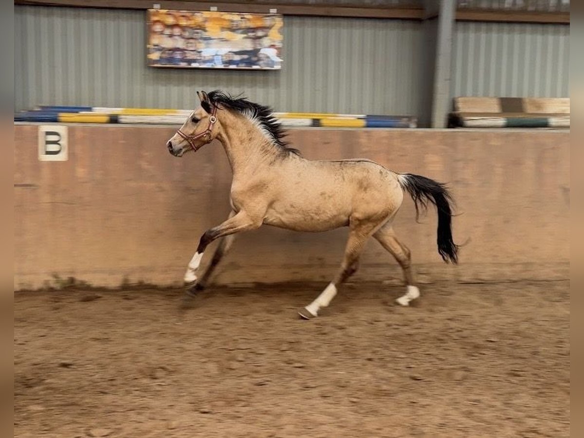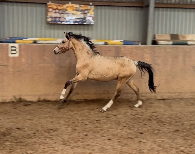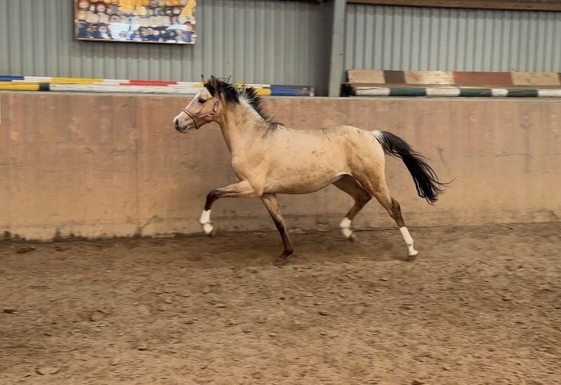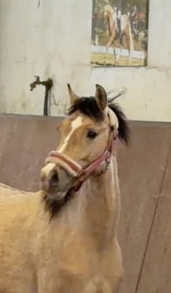 Verkaufe Deutsches Reitpony Hengst – Buckskin, geb. 2024 Dieser beeindruckende Deutsche Reitpony-Hengst besticht durch seine elegante Erscheinung und sein vielversprechendes Talent im Dressur- und Springsport.Geboren im Jahr 2024, präsentiert er sich in einem strahlenden Buckskin-Farbton, der seine Ausstrahlung zusätzlich unterstreicht. Candy Man zeigt viel Geschick beim Springen.- auch als zukünftiger Hunter interessant . Mit aktiver Hinterhand und viel Ausstrahlung. Er hat ein sehr liebes Wesen, ist nicht hengstig . Der Stutenstamm hat bereits viele erfolgreiche Sportponys herausgebracht . Vater Cashcode ist bekannt für seine Rittigkeit und ist bis M Dressur erfolgreich . Der junge Hengst wird sorgfältig auf seine zukünftige Karriere vorbereitet . Zäglicher Ungsng vom Fohlenalter annist bei uns selbstverständlich .Mit seinem harmonischen Körperbau, seinem angenehmen Charakter und seiner zu erwartenden guten Rittigkeit,ist er sowohl für den zukünftigen Ponysport als Familienpony , als auch für Ausbilder eine interessante Option. Sein ausgeglichenes Wesen, gepaart mit einer natürlichen Veranlagung für die Dressur, lässt auf eine erfolgreiche Zukunft in immSport hoffen. Der Hengst ist gut sozialisiert, brav im Umgang und zeigt sich auch im täglichen Handling zuverlässig und freundlich. Bei Interesse oder weiteren Fragen stehe ich Ihnen gerne zur Verfügung .