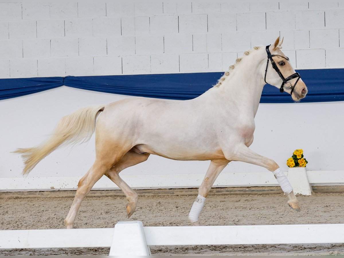 In unserer Kollektion stehen streng selektierte Youngster f�r alle Anspr�che: Ausbildungs-, Zucht- und Kinderponys Hier gelangen Sie zur Gesamtkollektion: https://ponyforum.auction Lernt man diesen Palominohengst kennen, kann man ihn sich direkt als top Reitpony vorstellen! Divertimento bringt alles mit, was ein modernes Reitpony braucht. Ablauf, Charakter, Einstellung – hat er alles. Durch seine Körung in Münster-Handorf im vergangenen Winter kennt der Hengst bereits Freispringen und Longenarbeit, hier zeigt er besonders eindrucksvoll, wie gut er sich in der Arbeit anbietet und mitmacht. Sein Vater Doppelklang ist aktuell hocherfolgreich in Dressurprüfungen der Klasse M, er hat mit den Hengsten Dreiklang und Danny Gold wahre Rittigkeitsvererber im Pedigree. Beim Namen der Mutter unseres Junghengstes werden Ponyfans direkt aufhorchen, hier steht die Staatsprämienstute Deep Red von Dimension AT zu Papier. Diese bedeutende Stute konnte sowohl die Westfälische Elitestutenschau in Münster sowie das Deutsche Stutenchampionat in Lienen gewinnen! Bevor sie dann in die Zucht wechselte, war sie nicht minder im Sport erfolgreich, hier nahm sie am Bundeschampionat teil und war bis zur Klasse L platziert.