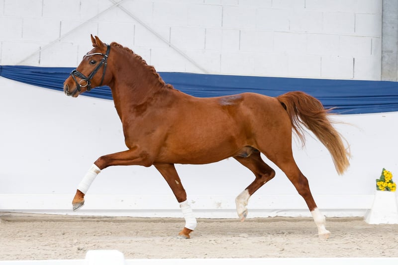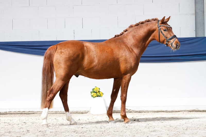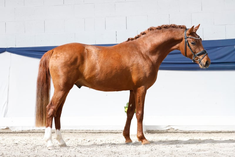 In unserer Kollektion stehen streng selektierte Youngster f�r alle Anspr�che: Ausbildungs-, Zucht- und Kinderponys Hier gelangen Sie zur Gesamtkollektion: https://ponyforum.auction Dieser dreijährige Fuchshengst bringt das ganz große Gesamtpaket aus Qualität und abgesichertem Pedigree mit! Dantes Peak präsentiert sich im ausdrucksstarken Hengstmodus – obwohl er tatsächlich weder in Körvorbereitung noch in anderem Training war. Er kommt „grün“ aus der Herdenaufzucht, hat aber sofort den Schalter umgelegt und ist direkt ein aufmerksames und arbeitswilliges Pony umgeswitcht, das gespannt auf neue Aufgaben wartet! Nicht nur sein hinreichend bekannter Vater Dance Star AT NRW, seines Zeichens Körungssieger; HLP- und Bundeschampion, sondern auch sein wertvoller Mutterstamm machen diesen Youngster hochinteressant für die Ausbildung unter dem Dressursattel! So ist Dante Peaks Mutter etwa eine Vollschwester zum Europameister Da Capo B, sie stammt ab von Dornik B – Golden Dancer. Ganz viel mehr hochkarätiges und seit Generationen erfolgreiches Dressurblut in einem Pony vereint geht nicht! Direkt vom Züchter.