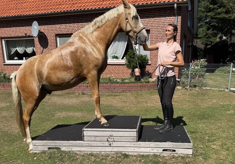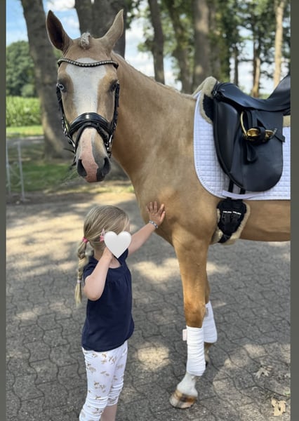 This absolutely fearless and charming Palomino gelding has a heart of gold and is looking for a new owner to spoil. He is equipped with very good basic gaits, already performs small jumps, and at just four years old, he confidently ventures out into the countryside. A 10-year-old girl has already been able to sit on him. However, due to his age, he is not a pure children's pony. A recent veterinary examination (AKU) and a complete TÜV report with no findings are available. He is being offered at a price well below market value due to a minor defect. Space before price. He truly has a heart of gold.