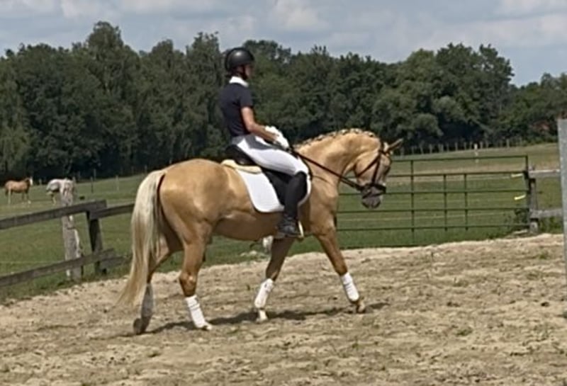 Deze absoluut onbevreesde en charmante palominohengst heeft een hart van goud en is op zoek naar een nieuwe wortelgever. Hij beschikt over zeer goede gangen, springt al een klein sprongetje en gaat zelfs al op zijn vierde jaar moedig het buitengebied in. Een tienermeisje heeft al eens op hem kunnen rijden. Echter, door zijn leeftijd is hij geen puur kinderpony. Een goede keuring en een compleet TÜV zonder bevindingen zijn aanwezig, en hij wordt vanwege een gebrek onder de marktwaarde aangeboden. Plaats gaat voor prijs. Hij heeft echt een ziel van goud.