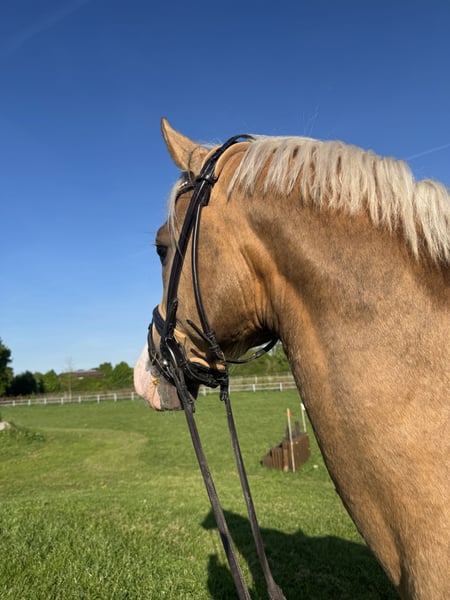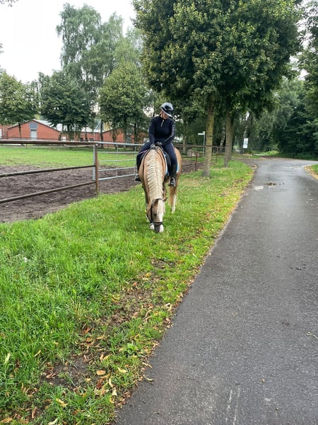 Beautiful Palomino – Treasure for Life With a heavy heart, I must part with my wonderful self-bred Palomino for personal reasons. He is a dream stallion standing at approximately 1.51 m – his golden color attracts all eyes. He is 4 years old and has been started under saddle. His lineage includes Reitlands Diamonds Gold x Trussardi x Halifax. His mother is a very nice pony mare, who is now winning E/A show jumping competitions with a young girl and has a lot of fun in eventing. ✨ Character: He is incredibly sweet to handle, people-oriented, and uncomplicated. Whether grooming, leading, or with the farrier – he cooperates well and always shows a friendly demeanor. Behavior: • Currently kept in a box • Compatible with geldings • Completely unproblematic with mares in the walker, next to the paddock, or in the neighboring box This Palomino is not only a visual highlight but also impresses with his wonderful character. He has everything it takes to become a loyal partner for life – whether in leisure or as a future all-rounder. Not for resale! Only to the very best and loving hands. ❤️ Please only complete inquiries; others will not be answered. Videos available via WhatsApp. No direct inquiries regarding price or health – he is in perfect health! A fee is charged for trial riding to prevent riding tourism.