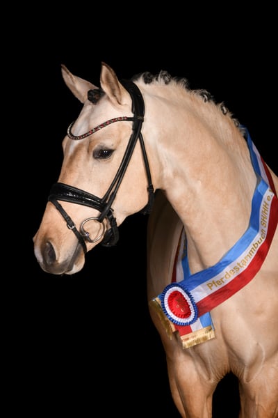 This very special pony combines everything that riders' hearts dream of. Featuring a striking, custom coat color in Dunskin, it not only captures attention visually but also impresses with its inner and outer qualities. Its strong hereditary traits, combined with good conformation, correctness, and outstanding movement quality, make it a true exceptional representative of its breed. Athletically, this pony leaves nothing to be desired: First reserve champion, multiple series winner in riding horse competitions up to dressage horse L-level – confidently competing against warmbloods as well. It always presents itself as motivated, focused, and performance-ready, without ever appearing nervous or overwhelmed. A true lesson pony that provides confidence to its rider and makes learning easy. But it’s not only in the arena where it impresses: It’s also an absolute dream in the countryside. Whether alone or in a group – it knows both situations, remains calm, is not spooky, and is reliable at all times. A pony you can trust and depend on 100%. This combination of willingness to perform and nerve strength makes it so special. Standing at its perfect final height, now 6 years old, measuring 14.8 hh (with shoes), it has ideal prerequisites for high-level pony sport. It is now ready for its first FEI tasks – with the right child by its side. And it’s incredibly versatile: Whether for less experienced riders who need safety and routine, or ambitious, already experienced children aiming to progress in sport – this pony handles every situation confidently, delicately, and always in harmonious partnership with its rider. Always honest, always diligent, always joyful in work. A true partner for children – both in sport and in everyday life. Impeccable X-rays from 2022 are available! Serious inquiries only – riding tourism is not permitted!