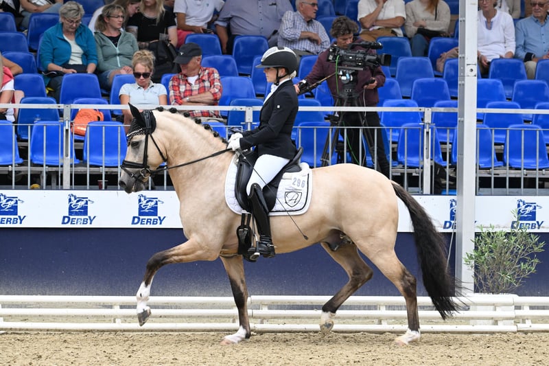 Dieses ganz besondere Pony vereint alles, wovon Reiterherzen träumen. In auffälliger Sonderlackierung mit der genauen Farbbezeichnung Dunskin zieht er nicht nur optisch alle Blicke auf sich, sondern überzeugt vor allem durch seine innere und äußere Qualität. Seine starke Vererbungsleistung, gepaart mit viel Übersicht, Korrektheit und herausragender Bewegungsqualität, machen ihn zu einem echten Ausnahmevertreter seiner Art. Sportlich lässt dieses Pony keine Wünsche offen: Erster Reservesieger, mehrfacher Seriensieger in Reitpferdeprüfungen bis hin zu Dressurpferde-L-Prüfungen – und das souverän auch gegen Warmblüter. Er präsentiert sich stets motiviert, konzentriert und leistungsbereit, ohne dabei jemals hektisch oder überfordert zu wirken. Ein echtes Lektionstaxi, das seinem Reiter Sicherheit gibt und Lernen leicht macht. Doch nicht nur im Viereck begeistert er: Auch im Gelände ist er ein absoluter Traum. Ob allein oder in der Gruppe – er kennt beides, bleibt gelassen, ist nicht glotzig und jederzeit zuverlässig. Ein Pony, dem man vertraut und auf das man sich zu 100 % verlassen kann. Genau diese Mischung aus Leistungsbereitschaft und Nervenstärke macht ihn so besonders. Mit seinem perfekten Endmaß stehend, nun 6-jährig, mit 148 cm (mit Eisen) eingetragen, bringt er ideale Voraussetzungen für den Ponysport auf höchstem Niveau mit. Er ist nun bereit für die ersten FEI-Aufgaben – mit dem richtigen Kind an seiner Seite. Dabei ist er unglaublich vielseitig: Egal ob schwächere Reiter, die Sicherheit und Routine brauchen, oder ambitionierte, bereits erfahrene Kinder, die sportlich weiterkommen möchten – dieses Pony meistert jede Situation souverän, feinfühlig und stets im harmonischen Einklang mit seinem Reiter. Immer ehrlich, immer bemüht, immer mit Freude bei der Arbeit. Ein echter Partner fürs Kind – im Sport wie im Alltag. Einwandfreie Röntgenbilder von 2022 liegen vor! Ernstgemeinte Anfagen setzen wir voraus - Reittourismus wird nicht gestattet!
