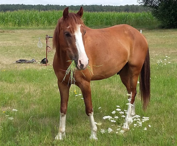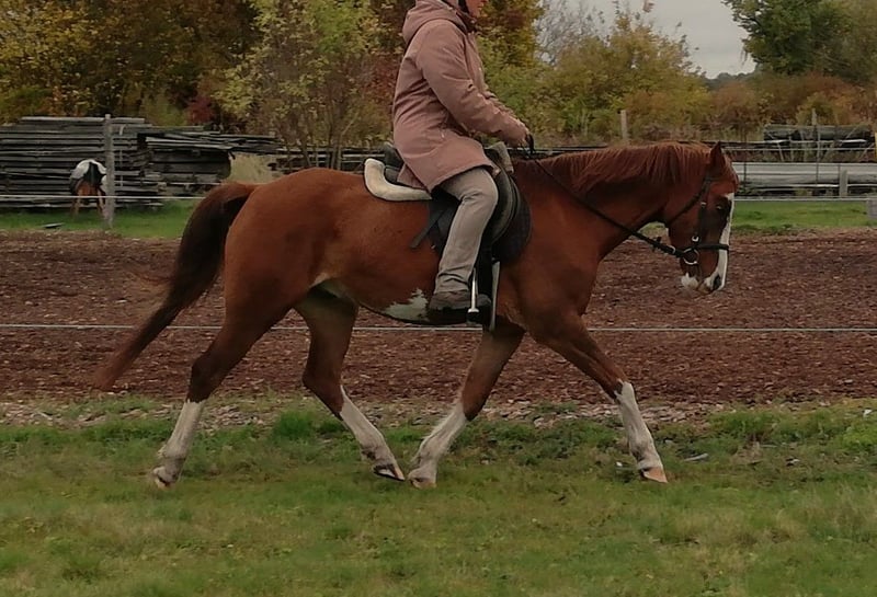 A 10-year-old, 142 cm small, sensitive pony gelding is looking for his person. As a school pony with constantly changing riders and sometimes inconsistent or unintentional aids, he struggles to cope. He needs a gentle, experienced rider with a feel for the horse and a guiding hand; someone who can provide him with structure and security. The pony is familiar with groundwork, lunging, double lunging, groundwork exercises, and hacking out in the field. He also works as a lead pony, including alongside bicycles. He enjoys playing and sparring with other geldings.