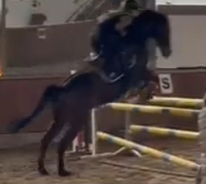 Yegua pony marrón de 11 años (148 cm) – Pony de salto – clasificada hasta A – no es adecuada para principiantes Se ofrece en venta una yegua pony marrón de 11 años con una altura de 148 cm. La yegua está entrenada para salto y tiene experiencia en competición. Ha participado en concursos de caballos jóvenes (RWB), clases de salto para jinetes en formación, así como en saltos de nivel E y A, logrando colocaciones y victorias. Tiene un carácter dulce, pero es segura de sí misma y motivada en el trabajo. Es tranquila en la forja y en el transporte, y conoce perros, tractores y maquinaria agrícola. Le encanta y necesita estar en el paddock, y es fácil de manejar, llevándose bien con sus congéneres. No es adecuada para principiantes; solo se recomienda para jinetes con experiencia, ya que siempre es manejable. Salta con precaución y con mucha reserva. Como suele decirse, extiende mucho su trasero (por lo que no es un pony para niños pequeños, hay que saber cómo sentarse). Más información, fotos y videos a petición. Prioridad a la calidad, no al precio. Precio a consultar. Por favor, solo contactar si hay interés real.