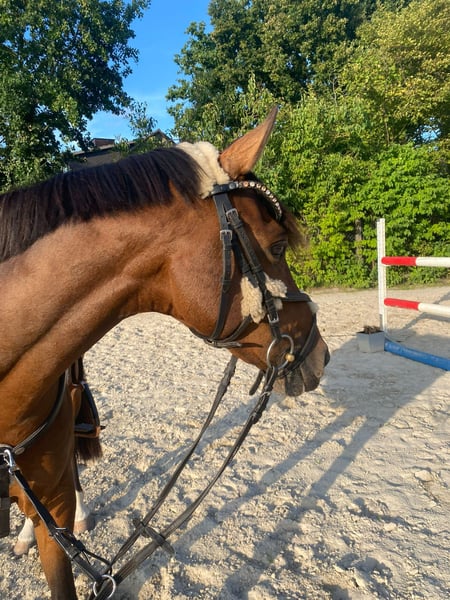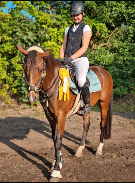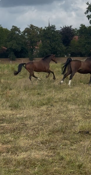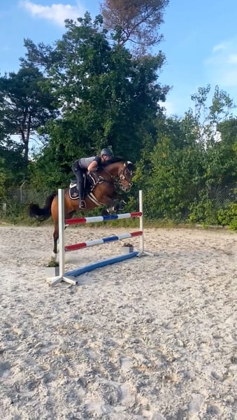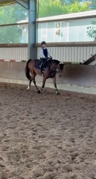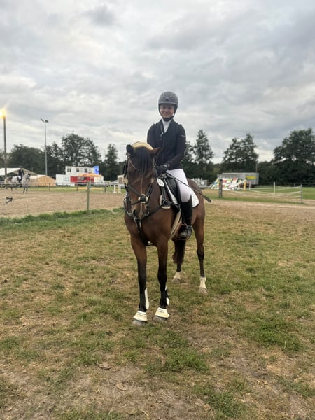 Beautiful, well-sized pony, 11 years old, from top Berlin bloodlines. Measured at 1.48 meters. Very well-behaved and gentle with children in the riding arena. Calm and reliable in the field. Absolutely road-safe. Has won at show jumping. Plenty of potential. Very easy to ride off the aids. Performs lateral movements and extended canter. Always kind in handling and with other horses. Loads alone and waits patiently in the trailer. More of a laid-back type. He spends his days on pasture and is stabled at night. Only available to experienced, caring owners with sufficient space. Suitable as a therapy horse or school pony for young children. He is also very calm and fearless at competitions, but needs a person who can provide him with calmness and security when competing alone. Further information gladly provided upon request. Phone: 0151.55888131