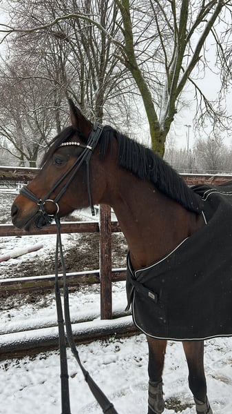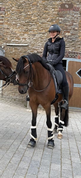 Ausdruck, Qualität, Charakter! Wer einen solchen Sportpartner sucht, wird hier fündig! G-Star, geb 2012, Wallach, 148 cm Abstammung: Going East x Dein Sunnyboy Wegen Umstiegs der Reiterin auf Grosspferd steht dieser Riesenschatz zum Verkauf. G-Star ist ein sehr gut ausgebildetes und erfahrenes FEI-Pony, das alle geforderten Lektionen sicher beherrscht. Er ist turniererprobt mit vielen Siegen und Platzierungen in L, L** und FEI-Prüfungen als Kaderpony. Als Jungpferd war er siegreich mit Noten bis 9,0 gegen Grosspferde. Er ist geeignet als idealer Partner sowohl für Kinder, die in den Sport einsteigen möchten als auch für ambitionierte Kinder zum sofortigen Turniereinsatz. Auch kleine und leichte Erwachsene deckt er gut ab. G-Star ist kerngesund und verletzungsbedingt noch nie ausgefallen, ein sehr guter RöntgenTüv aus 2024 liegt vor. Er hat keinerlei Mängel oder Unarten, ist Schmiede- und Verladefromm. Beim Reiten ist er immer fleißig, willig und artig mit einem sehr angenehmen Go und leicht in der Hand. Ausreiten ist mit ihm herrlich entspannt, kleinere Sprünge absolviert er sicher und fliegende Wechsel hat er schnell gelernt. Weide und Paddock genießt er sehr, anderen Pferden gegenüber ist er stets freundlich zugewandt. Im Umgang ist er ein Riesenschatz - artig, menschenbezogen, freundlich und gut gelaunt und von jedermann leicht zu Händeln. Er ist absolut kopfklar und unerschrocken und weder daheim noch beim Turnier umweltorientiert. G-Star ist ein Pony, das jeden Tag Freude bereitet und höchsten Ansprüchen stets gerecht wird!