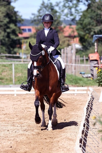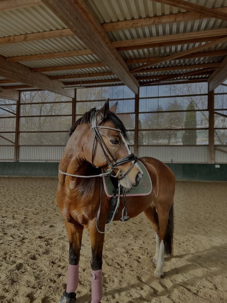 For sale is our 12-year-old German Riding Pony gelding, who is a real eye-catcher. He also brings 3 good gaits with him, learns quickly, and masters dressage movements up to Class A, with Class L movements having been started. Additionally, he has a great jump, with good technique and overview, making him a potential candidate as a show jumping pony. Besides regular jumps, he is also familiar with trot and canter poles as gymnastic work. He loves going out on trails, whether alone or in a group. He is well-behaved in handling, as well as during further handling at the veterinarian (vaccinations, dentist). Regular visits to the dentist (11/24), osteopath, etc. have been made. He is good with the farrier and loading, and has never been sick. He also enjoys his time in the paddock, on the pasture, and loves cuddling with his familiar person. This gelding is looking for a 5-star home where he will be loved and supported. We are selling him because my daughter is moving on to a larger horse. Further information, videos, and photos can be sent upon request.