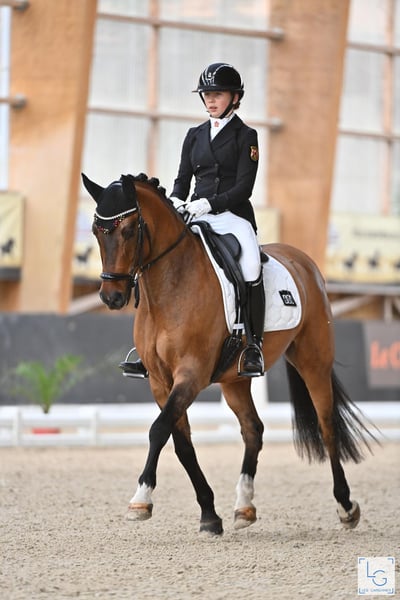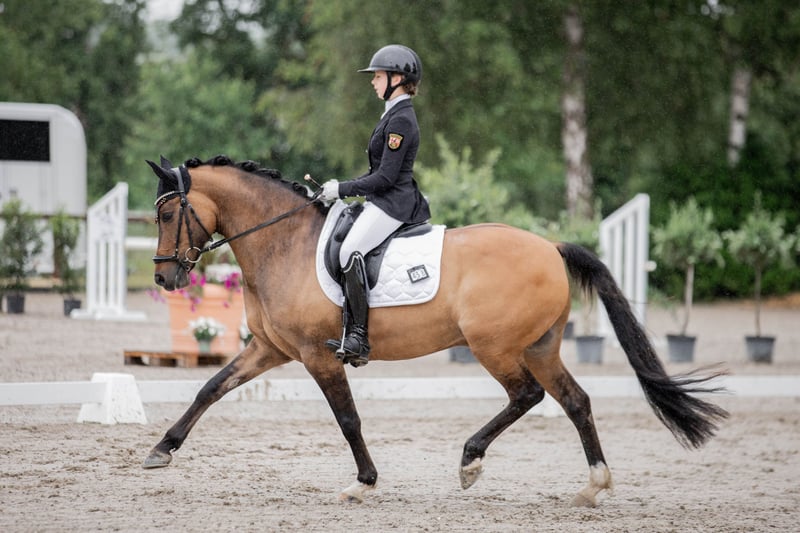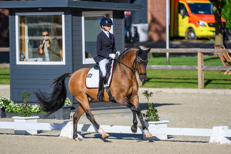 Melli’s Diamond – FEI-erfolgreicher Dressurlehrmeister mit herausragender Erfolgsbilanz Melli’s Diamond ist ein hoch erfolgreicher, erfahrener und absolut zuverlässiger Dressurpony-Wallach, der aufgrund des Endes der Ponyzeit in ein neues, förderndes 5-Sterne-Zuhause abgegeben wird. Der 2014 geborene Wallach mit einem Stockmaß von 149,5 cm (mit Eisen) verfügt über einen FEI-Pass und ist ein echtes Verlasspony für den gehobenen Dressursport. Durch seine Souveränität im Viereck, seine Nervenstärke, seine Rittigkeit und seine hohe Lektionensicherheit konnte er in den vergangenen Jahren zahlreiche Platzierungen und Siege bis hin zur Pony FEI Tour auf nationalem und internationalem Niveau erzielen. Er eignet sich ideal als Lehrmeister für ambitionierte Nachwuchsreiter, die ein bereits erfolgreich vorgestelltes und absolut erfahrenes Pony suchen. Vom Einstieg in den gehobenen Dressursport bis hin zur Pony FEI bringt Melli’s Diamond alles mit, was man sich für eine sichere und erfolgreiche Zukunft im Sport wünscht. Auch abseits des Vierecks überzeugt er in jeder Hinsicht: Er ist sehr lieb im Umgang, unkompliziert, kinderfreundlich und im täglichen Handling problemlos zu managen. Erfolge: 2023 & 2024 Bronze bei den Süddeutschen Ponymeisterschaften 2023 Platz 3 bei den Landesmeisterschaften 2024 Landesmeister DJM 2024, 1. Wertungsprüfung Platz 8 mit 70,718 % Bestes Ergebnis: 76,367 % (kein Kürergebniss) Er ist gesund, ohne bekannte Vorerkrankungen, und aktuelle Röntgenbilder liegen vor. Ein Pony für Reiter, die nicht einfach nur ein gutes Pony suchen, sondern einen bewährten Partner mit Qualität, Erfahrung und absoluter Zuverlässigkeit. Anfragen und Terminvereinbarung unter 01784 302448