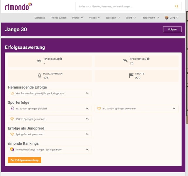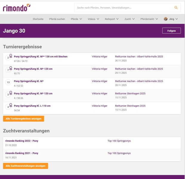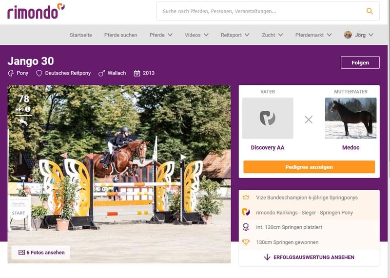 GERMAN JUMPING PONY - GRAND PRIX – EM – PART OF FAMILY Ein Überflieger im wahrsten Sinne des Wortes ist unser geliebtes Pony Jango 30. Aber alles hat mal eine Ende, so auch die Ponyzeit. Jango hat mit Tochter Viktoria gerade sein letztes Turnier bestritten und noch einmal seine ganze große Klasse gezeigt. Die Beiden waren als Mitglied des deutschen Bundeskaders für das grosse Hallenchampionat in Aachen nominiert. Im Finale am Sonntag zeigte Jango sein enormes Potential für die wirklich hohen Springen, fehlerfrei im Umlauf, fehlerfrei im Stechen mit einer überragenden Zeit. Nur Mini Voss aus Holland konnte Vicky mit Jango letztendlich knapp den Sieg abringen. Pony Jango hat sich mit seiner jungen Reiterin bis in die höchsten Springevents hochgearbeitet, hatte auf diesem Niveau noch keinerlei Erfahrungen mit der Vorbesitzerin. Es gab Höhen und (seltene Tiefen), die Beiden haben sich nie beirren lassen, sich immer gemeinsam weiter entwickelt und letztendlich ihr Können gerade noch einmal in Aachen gezeigt. Mit entsprechend engagierter Reiterin/Reiter ist mit Jango im Ponyspringsport ALLES zu erreichen. Jango hat reichlich Go, eine riesige Gallopade und ist mit FEI 149cm im ehrlichen Pony-Endmaß. Erfolge sind zahllos, alleine in 2024: 9 Siege in der höchsten Ponyklasse 120-135cm. Sieger Finale deut. Meisterschaften 2024, Nr. 1 der deutschen Springponys im rimondo ranking 2024, Sieger der nationalen HGS Ponytour Large. Mehrfach platziert in internationalen GrandPrix‘. Fehlerfrei im Nationenpreis Umlauf bei den Europameisterschaften 2025 Le Mans, fehlerfrei Umlauf und Stechen ‚kleines Finale‘ EM le Mans. Jango ist ein unheimlich intelligenter Typ, verspielt, ein Traumpartner zum Liebhaben und zum Schleifen sammeln! Jango geben wir nur in allerbeste Hände. Platz vor Preis!