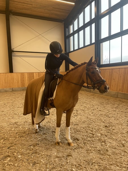 Für mein Deutsches Reitpony Vito H suche ich ein neues, förderndes Zuhause. Durch Schwangerschaft und nun die Mutterschaft kann ich ihm dauerhaft selber nicht die Zeit und Weiterentwicklung bieten, die er verdient – daher soll er einem neuen jungen Reiter oder einem kleinen Erwachsenen zuverlässig zur Seite stehen. Vito überzeugt mit vielen wertvollen Eigenschaften: • Verlasspony: immer brav, abgeklärt und nervenstark. • Artig beim Verladen: geht alleine auf den Anhänger und wieder runter; fährt problemlos sowohl Anhänger als auch LKW. • L-fertig: solide ausgebildet, zuverlässig und motiviert. • Gesundes Maß an Gangfreude: fleißig, aber gut regulierbar. Kann mit Gerte und Sporen geritten werden. • Springen wurde bei uns nicht weiter gefördert, Potenzial ist vorhanden. • Endmaßpony: ideal für ambitionierte Jugendliche oder kleine Erwachsene. Vito ist ein unkomplizierter und ehrlicher Partner, der zuverlässig mitarbeitet und Freude an der gemeinsamen Arbeit hat. Er geht auch brav ins Gelände. 17.500€ Umfangreicher TÜV (Dezember 2025) vorhanden. Bei ernsthaftem Interesse freue ich mich über eine Nachricht. Probereiten und Kennenlernen sind selbstverständlich möglich.