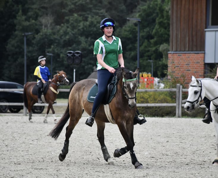 „Pepsi“ ist ein Deutsches Reitpony (Welsh B-Araber-Mix) und ist derzeit 15 Jahre alt. Er ist nun 6 Jahre im Mounted Games Sport gelaufen, ist dementsprechend angstfrei und große Reitplätze und Arenen mit viel Publikum gewohnt. Er ist in der Dressur bis A-Niveau ausgebildet und läuft immer fein an den Hilfen. Dabei zeigt er tolle Gänge. Auch springen tut er gerne und zuverlässig. Pepsi ist ein selbstbewusstes Pony und gibt seinen Reitern immer viel Sicherheit und lässt sich von jedem gut reiten. Er geht alleine und mit anderen Pferden ins Gelände und lässt sich dabei immer gut händeln. Er ist ein fleißiges Pony, dabei aber nie nervös und kann somit auch problemlos von Kindern geritten werden. Er ist schmiede- und verladefromm und hat keinerlei Krankheiten. Er wurde selbstverständlich immer entwurmt und geimpft. Bei Bedarf kann passendes, gut erhaltenes Zubehör übernommen werden. Bei weiteren Fragen, können Sie sich gerne unter der Nummer: 0176 35490207 auf WhatsApp melden.