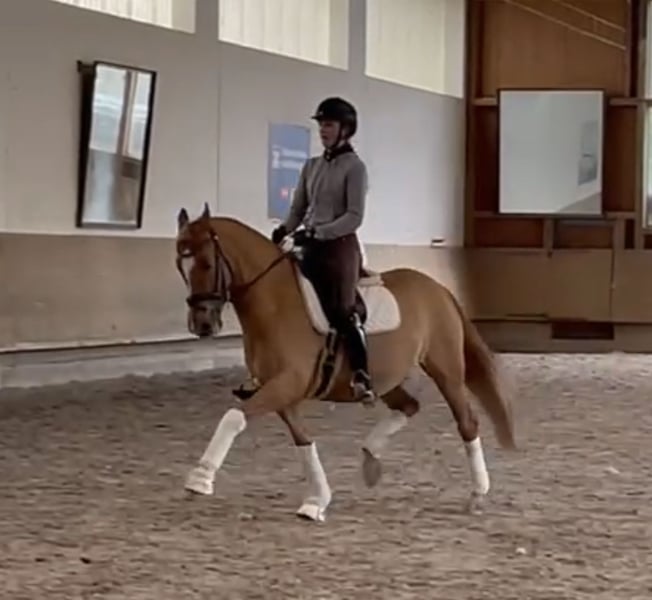Top Pony ! Expressive and dynamic dressage pony for the ambitious dressage youngsters! Placements up to FEI due to switch to large horse for sale. Top opportunity!!!