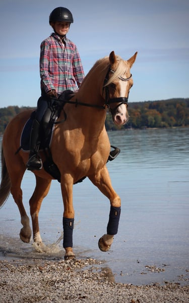 Verkaufe deutsches Reitpony – Wallach, Geburtsjahr 2009, Palomino, Stockmaß 148 cm Unser Dimi ist ein Lehrmeister der besonderen Art. In der Dressur geht er spielerisch die Lektionen bis zur Klasse S und überzeugt auf dem Turnier stets die Richter erfolgreich bis zur Klasse M. Ob im Gelände oder bei kleinen Sprüngen zeigt er sich immer motiviert und will gefallen. Durch die Umstieg auf ein Großpferd müssen wir uns leider von ihm trennen und wünschen uns ein Zuhause, in welchem er ambitionierten Reitern Freude bereiten kann! Dimi ist brav im Umgang, kennt die Arbeit mit Kindern ist dennoch kein reines Anfängerpferd. Bei Interesse oder für weitere Informationen freue ich mich auf Ihre Kontaktaufnahme.