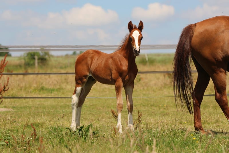 We are looking for a new home for our riding pony gelding "Napoleon N," born on May 17, 2024. He is a son of the Bundeschampion and licensing champion stallion (Weser-Ems) "Neverland WE." A large number of the offspring of "Neverland WE" have already been successfully presented at shows and championships (including the Bundeschampion "Noble Dance"). Napoleon's mother is a small (approximately 1.61 m) warmblood mare (German Sport Horse) by the premium stallion and licensing champion "Quintus Gold." Due to this lineage, Napoleon is likely to be suitable for both show jumping and dressage. He is expected to reach a final height of approximately 1.55 – 1.60 m. Two half-brothers from the mare have reached about this height at the ages of 3 and 5. His three-year-old half-brother by "Crown Charm of Royal" can be seen in a picture with him. Napoleon is visually striking due to his large blaze and his four high white legs. He is people-oriented, halter-trained, and is familiar with the farrier and veterinarian through vaccinations and deworming. Currently, he is living with several young horses on the summer pasture and can be visited and gotten to know there. The pictures are partly current and partly from 2024.
