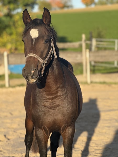 Deutsches Reitpony Wallach mit Wahnsinns Charakter und Bewegung, sehr menschenbezogen. Camaro ist im Februar 2023 geboren daher noch roh, Fohlen ABC sitzt. Bei der Freiarbeit zeigt er sich sehr lernwillig und ruhig. Schmied und Anhänger fahren kennt er auch und benimmt sich dabei super. Bei Interesse gern schreiben oder unter Telefonnummer 01717707816. Videos von der Bewegung vorhanden.