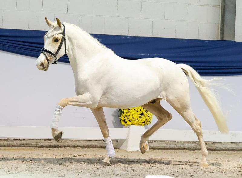 In unserer Kollektion stehen streng selektierte Youngster f�r alle Anspr�che: Ausbildungs-, Zucht- und Kinderponys Hier gelangen Sie zur Gesamtkollektion: https://ponyforum.auction Hier kommt Nesquick angeflogen! Wenn er los trabt, zieht er alle Blicke auf sich. Schwungvoll und mit richtig Gummi fliegt der hübsche dreijährige Palomino durch die Bahn, was für eine Bewegungsdynamik! Und auch der bergauf gesprungene Galopp ist von erlesener Sorte, die Hinterhand fußt vorbildlich unter und gibt Kraft. Schon als Fohlen war Nesquick ein auffälliges Pony und er konnte sich beim Deutschen Reitponyfohlenchampionat weit vorne platzieren. Er ist sicher im Handling, kennt erste Longenarbeit und kann jetzt direkt in die Ausbildung starten - um dann in der nächsten Saison sicherlich erfolgversprechend in Aufbauprüfungen eingesetzt zu werden.
