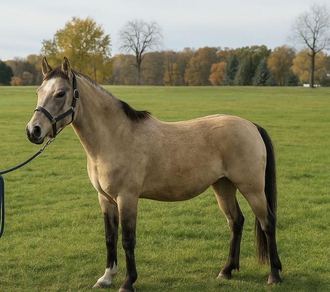 Très joli poney allemand de 3 ans, hongre, cherche un nouveau cadre d'utilisation ! Idéal également pour un instructeur. Il est très délicat dans sa manière de travailler et reste toujours curieux face à tout ce qui est nouveau ! Il séduit par sa couleur et ses excellentes allures. Il a déjà été longé et réalise un très bon saut en liberté ! Un poney pour toutes les disciplines équestres ! Sur demande, il peut encore être monté. Il a grandi en troupeau et connaît aujourd'hui toutes sortes de modes d’élevage. Il connaît le maréchal-ferrant ! Le voyage en van ne pose aucun problème, il peut être chargé en une minute ! Un contrôle technique récent, très bon, sans anomalies, est disponible. D’autres poneys de différents âges et couleurs sont disponibles sur demande ! Pour plus d’informations, veuillez me contacter personnellement, y compris le prix.