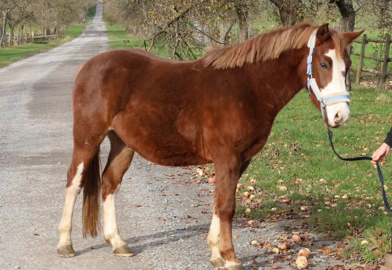 For sale: German Riding Pony gelding, mixed breed A stunning, well-started German Riding Pony gelding mix, born in 2022. His attractive chestnut coat makes him a real eye-catcher. With an estimated final height of 14.4 hands, he is ideally suited for leisure riding and impresses with his friendly temperament and versatile potential. I am happy to provide further information and arrange a viewing upon request. He is currently being lunged and is accustomed to a saddle and bridle.