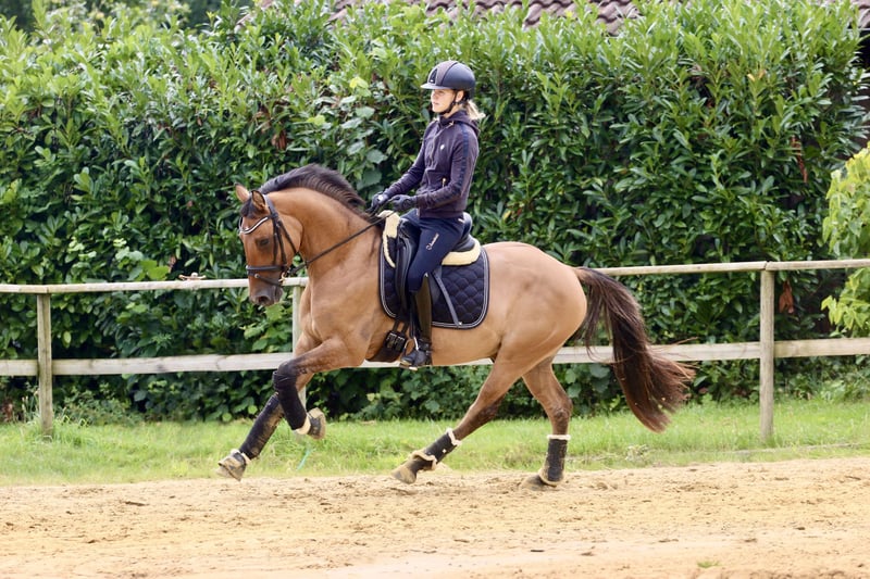 We are selling our 3-year-old gelding by Don Deluxe RB x Dimension AT. He is currently being trained in various disciplines by us. Whether it's trail riding, dressage, groundwork, or galloping across the field, he masters everything with flying colors. He has also jumped a small jump already. He possesses 3 very good basic gaits! At the moment, he is being ridden by an 11-year-old child (video available). Definitely a future children's pony. If interested, please contact us at 015229060062! Price is negotiable; a good home is more important to us.