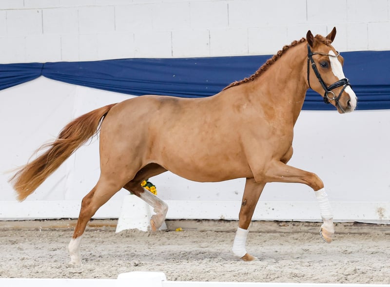 In unserer Kollektion stehen streng selektierte Youngster f�r alle Anspr�che: Ausbildungs-, Zucht- und Kinderponys Hier gelangen Sie zur Gesamtkollektion: https://ponyforum.auction Der dreijährige Fuchswallach Wasteins Dorricone hat ein absolut hochkarätiges Pedigree. Sein Vater Darlington selbst ist erfolgreich im Dressursport bis zum Grand Prix! Ein Bruder unseres Auktionspony ist ebenfalls in der S-Tour erfolgreich, dies ist kein geringerer als der Hengst Darubi Gold. Aus dem weitverzweigten Mutterstamm entspringen u.a. der Stempelhengst Golden Dancer und der Europameister Danilo. Dorricone steht im sicheren Ponymass und er wird mit seiner Grundqualität sicherlich in die erfolgreichen Hufspuren seiner international wirkenden Verwandtschaft treten können! Er kommt direkt aus der Aufzuchtgruppe zu uns und ist noch roh, aber er stellt sich mit allen Anforderungen clever an und bemüht sich immer, seine Menschen zu verstehen. Ein feiner Kerl, der mit seinem ausgeglichenen Wesen auch sicherlich eine Familie glücklich machen kann.