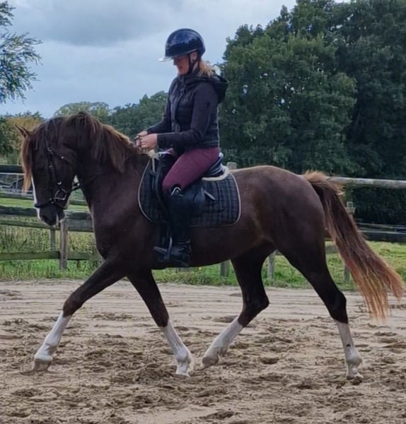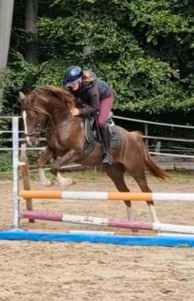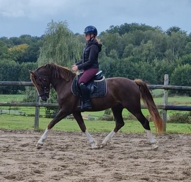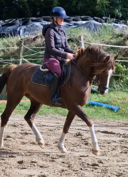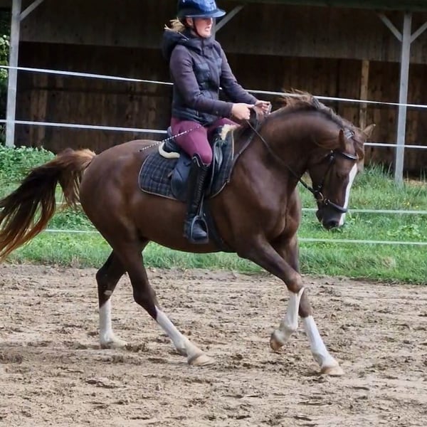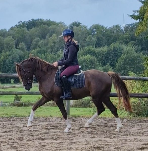 This beautiful gelding is equipped with three very good basic gaits. He has been started under saddle and is back in the pasture with a mixed herd. Anyone who has the time and desire can continue his training. He loads onto the horse trailer without any problems and enjoys trail rides. He is always very relaxed and is up for any fun. He has grown up here and is familiar with children, dogs, tractors, and everything that happens on a farm. He has a passport without pedigree. His mother is a riding pony and his father is an Oldenburg who is still here on the farm. He can also be viewed. We look forward to your visit.