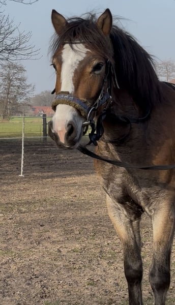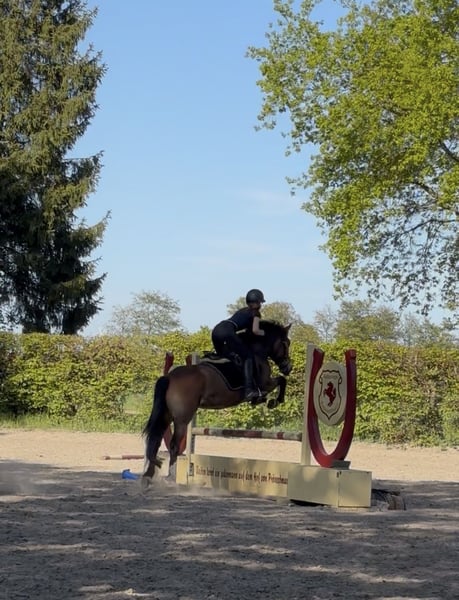 Wunderschönes Nachwuchspony – Herzenspony sucht seinen Menschen Zum Verkauf steht ein 4-jähriges Pony mit einem Stockmaß von ca. 1,43 m, das nicht nur durch seine Ausbildung, sondern vor allem durch seinen außergewöhnlichen Charakter überzeugt. Dieses Pony ist ein echter Kumpeltyp – ehrlich, menschenbezogen und immer motiviert. Ein Herzenspony, das seinem Menschen Freude schenkt und das Potenzial hat, ein echter Freund fürs Leben zu werden. Ausbildung & Können: • Sicher in allen drei Grundgangarten (Schritt, Trab, Galopp) in der Reithalle, auf dem Außenplatz sowie im Gelände • Geht alleine ins Gelände und zeigt sich dabei stets brav und zuverlässig • Lässt sich auf der Wiese (einhändig!) galoppieren und bleibt jederzeit gut regulierbar • Springt bereits einen kleinen Parcours und kennt auch Geländehindernisse wie Baumstämme Trotz seines jungen Alters zeigt er sich bereits sehr abgeklärt und lernwillig. Er bringt die ideale Grundlage für eine weitere Förderung in verschiedenste Richtungen mit – ob Freizeit, Gelände oder erste Turniererfahrungen. Fazit: Ein Pony mit viel Herz, Verstand und Perspektive – ideal für Reiter, die sich einen verlässlichen Partner für gemeinsame Entwicklung und unvergessliche Momente wünschen. Bei ernsthaftem Interesse freuen wir uns über eine Nachricht mit kurzer Vorstellung. Bei Interesse melden Sie sich gern unter der Nummer 01704320846