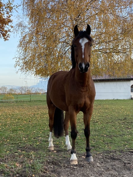 This charming and friendly gelding, who is very attentive to humans, is searching for his forever family. He was gently and playfully backed by us and has been very sweet and calm from day one. He has never taken a wrong step and approaches all new experiences with full enthusiasm. He is very brave and, for his age, confident and relaxed. He is traffic-safe; trucks and large tractors do not disturb him, and he can be ridden independently in all gaits by a 9-year-old girl. An all-around wonderful pony. He has never been ill. A health check (AKU) is not available but can be arranged if desired. Additionally, he has been driven in a pair and has won a free jumping championship. He handles competitions and training with flying colors and is not spooky. He is well-suited for breeding; the rider in the photos is 173 cm tall. He is barefoot and grows in a mixed herd in an open stall, living on grass 24/7 with constant hay, which he tolerates very well. For serious inquiries, please call 015118980354. He is only being sold because I am simply too tall for him to compete in tournaments long-term, and I already have his full-sized brother. He will only be placed in caring and loving hands. Equipment such as saddle and bridle can possibly be purchased together. Based on past experience, we do not send videos, as many only collect footage without checking the distance or realizing they are looking for a large horse and do not read the full ad. Genuine interest is best served by viewing this wonderful pony in person. The pony is still at the beginning of his training but definitely has the potential to become a ribbon collector. His calm demeanor will surely make him shine at any competition. However, if you are looking for a highly trained, show-quality dressage pony at age 3, this is not the right place. His training focuses on healthy riding, emphasizing suppleness, fine contact, and safe, relaxed movement from A to B—more important for children and adults than fancy leg movements. To avoid riding tourism, a fee of 35 euros is charged for show, lunging, and trial riding.