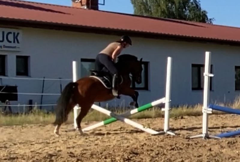 Dieser charmante und freundliche Wallach, der dem Menschen sehr zugewandt ist, sucht seine für immer Familie. Er wurde bei uns schonend und spielerisch angeritten und zeigte sich von Tag 1 an, sehr lieb und abgeklärt, er hat noch nie einen falschen Schritt gemacht und ist bei allem Neuem immer mit voller Begeisterung dabei. Dabei sehr unerschrocken und für sein Alter sehr sicher und entspannt. Er zeigt sich Straßenverkehrssicher LKW und Riesen Trecker ect bringen ihn nicht aus der Ruhe, und er kann schon von einer 9 jährigen kleinen Reiterin in allen Gangarten selbstständig geritten werden. Ein rundum tolles Pony. War bisher nie krank. Eine AKU liegt nicht vor, kann aber gerne gemacht werden. Zudem ist 2 spännig angefahren worden und hat ein Freispringchampionat gewonnen. Auswärts reiten und Training meistert er mit Bravour und ist nicht glotzig. Er deckt sehr gut ab, Reiterin auf den Bildern ist 173 cm. Er ist Barhuf und wächst in gemischter Herde im Offenstall auf und steht 24/7 auf Gras mit dauerhaft Heu, das verträgt er sehr gut. Bei ernstem Interesse bitte anrufen 015118980354 er wird nur verkauft da ich auf Dauer einfach zu groß für ihn bin um ihn turniertechnisch reiten zu können und ich schon seinen Bruder in der Größe besitze. Wird nur in gute und liebevolle Hände abgegeben. Zubehör wie Sattel und Trense können ggf miterworben werden. Da wir die Erfahrung gemacht haben, dass viele nur Videos sammeln und gar nicht schauen wie weit die Entfernung ist oder eigentlich ja ein Großpferd suchen und die Anzeige nicht komplett lesen, werden keine Videos versendet. Wer echtes Interesse hat, schaut sich dieses Superpony in echt an. Das Pony ist noch am Anfang seiner Ausbildung aber hat definitiv Potential um ein schleifensammler zu werden. Alleine durch seine Coolness, wird er sicher auf jedem Turnierplatz glänzen. Aber wer mit 3 einen hochgestochenen unreel ausgebildeten Strampler sucht, der ist hier fehl am Platz. Seine Ausbildung basiert auf ein gesunderhaltenes Reiten, wo Durchlässigkeit und feine Anlehnung und sicheres von A nach B kommen für Kinder und Erwachsene wichtiger ist, als die Beine hübsch zu schmeißen. Um Reittourismus zu vermeiden, werden 35 eur fürs zeigen, vorreiten und Probereiten verlangt.