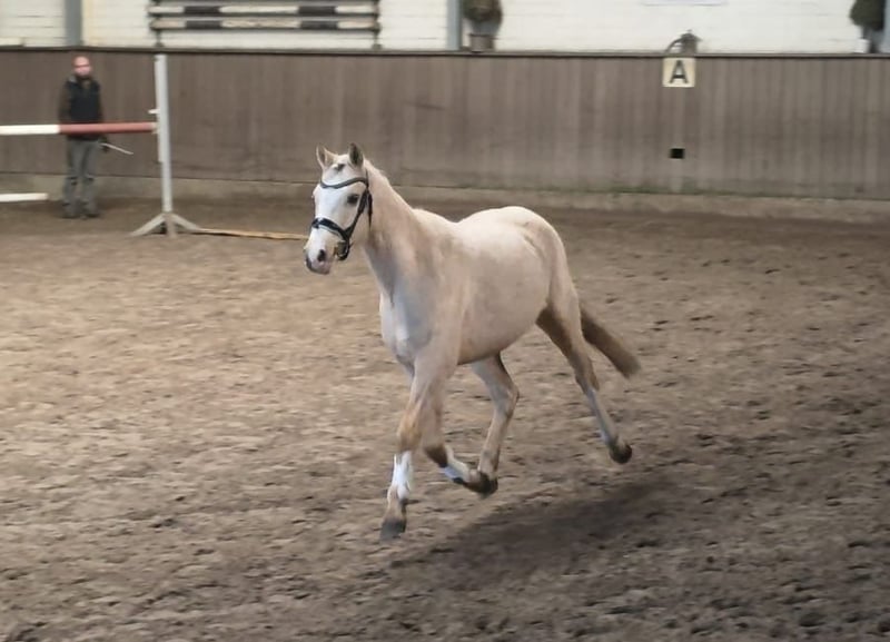 Mozart – junger Allrounder mit Herz und Talent Zum Verkauf steht der 4-jährige Wallach Mozart mit einem Stockmaß von ca. 145 cm. Dieser sehr hübsche und sympathische junge Wallach besticht nicht nur durch seine Ausstrahlung, sondern vor allem durch seinen Charakter: Mozart ist äußerst menschenbezogen, freundlich und stets bemüht, seinem Reiter zu gefallen – ein echter Kumpel für jeden Tag. Er zeigt sich unerschrocken und nervenstark. Erste Ausflüge in fremde Umgebung, wie z. B. in eine andere Halle zum Freispringen, meisterte er souverän und gelassen. Dabei überzeugte er besonders am Sprung: Mit viel Übersicht, Vermögen und einer sehr guten Manier ließ sein Freispringen keine Wünsche offen. Auch in seiner Ausbildung zeigt sich Mozart vorbildlich. Die Gewöhnung an Sattel und Reiter verlief völlig unkompliziert und selbstverständlich. Die ersten geführten Schritte unter dem Reiter hat er brav und gelassen gemeistert. Mozart bringt beste Voraussetzungen für eine vielseitige Zukunft mit – ob im Springsport, in der Vielseitigkeit oder als verlässlicher Freizeitpartner. Durch sein freundliches Wesen und seine Einstellung ist er auch ein Pony, das Kinder glücklich machen kann – mit entsprechender weiterer Förderung. Ein sehr guter Tüv liegt vor! Ein Pony zum Verlieben mit viel Potenzial und Herz. Bei ernsthaftem Interesse freuen wir uns über Ihre Nachricht.