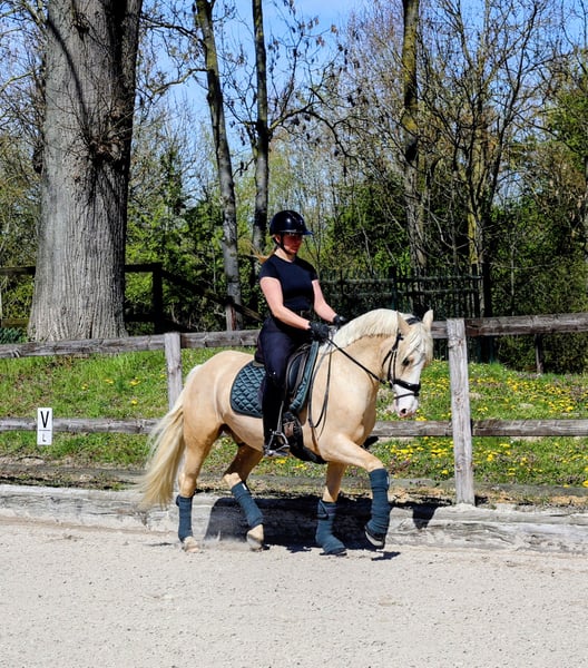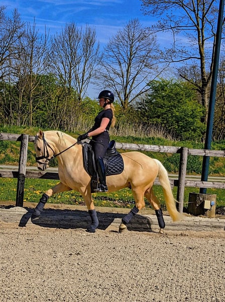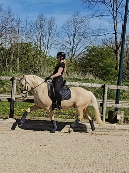 VIDEO https://youtube.com/shorts/GTvLZ7j_jy4?is=bKM8P9EqQ6KBP_Xa Dieser absolut tolle Kerl abstammen von Diamond Touch NRW sucht ein absolutes Traum Zuhause. Solide in Ruhe angeritten, hat er niemals auch nur eine falschen Tritt gemacht. Ob im fremden Gelände, in der Halle, auf dem Springplatz oder bei seinem ersten Auswärtstraining mit toller Osterdekorstion, stellt er hier seinen Traum Charakter unter Beweis. Er lässt sich brav auch mit Pad reiten und ist von Anfang an auch von kleineren Kindern super zu handeln gewesen. Inzwischen auch von 7 jährigen Mädchen begleitet geritten und gesprungen und lässt sich auch auswärts von 7 j Kind verladen. . Hier ist er mit und ohne Sattel einfach ein Schatz! Er bleibt zum Kuscheln mit den Kids in der Box entspannt liegen, ist aber unter dem Sattel fein genug um sein Potential auch im FEI Sport entfalten zu können. Er macht brav einen kleinen Sprung und wir erwarten, dass auf den in Kürze geplanten Turnieren genau so einen Topjob macht wie daheim. Er deckt super ab ( Reiterin auf den Bildern 1,68) und ist leicht in der Hand und easy an den Zügel zu reiten. Der Traumkerl zeigt 3 sehr gute Grundgangarten mit FEI Potential. Er ist super artig beim Schmied -selbst beim ersten Beschlag und war hier entspannt zu scheren. Gute Röntgenbilder inkl Rücken liegen bereits vor. Ein Traum Pony für eine Mutter/ Tochter- oder Geschwister-Kombination bei der ein Reiter dieses Traumpony weiter ausbilden kann. Videos und weitere Infos unter : 0177 275 9886 ALLE ANGABEN OHNE GEWÄHR, DA SIE AUF SUBJEKTIVEN EINDRÜCKEN DES ANBIETERS UND/ ODER VERKÄUFERS BERUHEN.