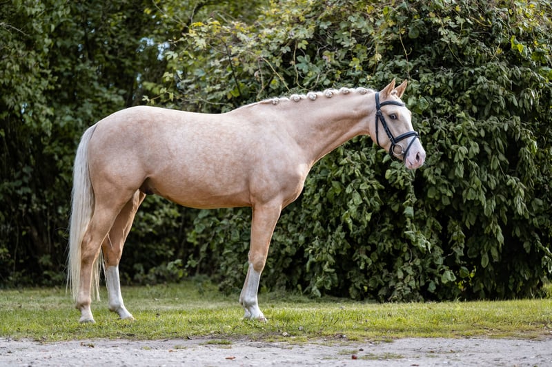 Duke befindet sich seit dem Frühjahr bei uns in Ausbildung. Wir haben ihn schonend angeritten und er lässt sich brav in allen 3 Grundgangarten arbeiten. Er verfügt über viel Bewegungspotential und ein sehr aktives Hinterbein. Auch im Freispringen ist er steht’s motiviert, erste kleine Sprünge unter dem Reiter hat er ebenfalls sehr brav absolviert. Er wurde 2 mal in Reitpferdeprüfungen vorgestellt und verpasste nur knapp eine Platzierung. Aufgrund des Alters kein Anfängerpony.