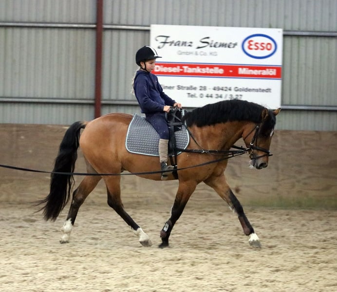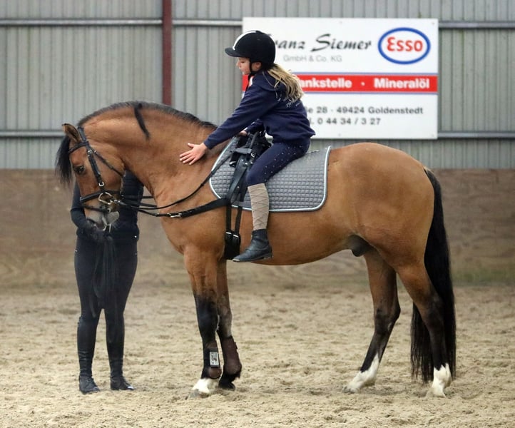 Zum Verkauf steht ein wunderschöner Reitpony-Wallach (Deutsche Abstammung väterlicherseits) , geboren im Jahr 2022. Das Pony ist ein eleganter Falbe mit einem Stockmaß von 148 cm. Es ist ideal für den Dressur- sowie Springsport geeignet und zeigt viel Talent sowie eine angenehme Charakter. Das Pony ist solid ausgebildet, freundlich im Umgang und besitzt eine vielversprechende Zukunft im Sport odder einfach als Freizeitpartner für die ganze Familie. Lucky-Luke ist kräftig gebaut mit außerordentlich viel Fundament. Großartige Grundgangarten, zeigt Talent am Sprung, arbeitswillig und vielseitig einsetzbar. Röntgenologisch unteruscht jedoch ohne Befund. Eine klinishce Ankaufsunterucheung wird zeitnah zur Übergabe durchgeführt. Bei Interesse oder weiteren Fragen stehen wir gerne zur Verfügung. Nur seriöse Anfragen, Besichtigungen Samstagvormittag nach telefonischer Vereinbarung möglich. Videos sind vorhanden. Wir bitten um Verständnis, dass Videos werden nur nach telefinischer Kontaktaufnahme per whatsapp verschickt.