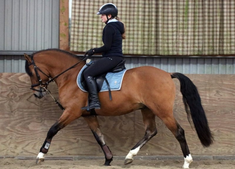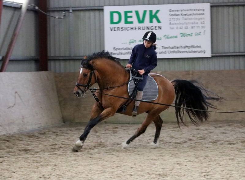 Te koop staat een prachtige dressuurpony-ruin (met Duitse afstamming van vaderskant), geboren in 2022. De pony is een elegante valk met een stokmaat van 148 cm. Het is ideaal voor dressuur en springen, toont veel talent en heeft een aangenaam karakter. De pony is goed opgeleid, vriendelijk in de omgang en heeft een veelbelovende toekomst in de sport of eenvoudigweg als recreatiepartner voor het hele gezin. Lucky-Luke is krachtig gebouwd met bijzonder veel fundament. Uitstekende basisgangen, toont talent voor springen, werkwillig en veelzijdig inzetbaar. Röntgenologisch onderzocht, maar zonder bevindingen. Een klinisch aankooponderzoek wordt binnenkort voor de overdracht uitgevoerd. Bij interesse of voor verdere vragen staan wij graag voor u klaar. Alleen serieuze aanvragen. Bezichtigingen mogelijk op zaterdagochtend na telefonische afspraak. Video's zijn beschikbaar. We vragen om begrip dat video's alleen na telefonische contact via WhatsApp worden verstuurd.
