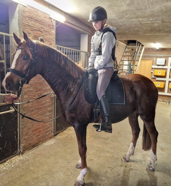 Te koop: Duitse rijpony-hengst Te koop staat een prachtige Duitse rijpony-hengst, geboren in 2022. Het paard valt op door zijn elegante uitstraling en zijn evenwichtige temperament. Hij is een donker vos met een stokmaat van 152 cm. De hengst is gezond, regelmatig gevaccineerd en ontwormd. Hij beschikt over een veelbelovende basisopleiding en is geschikt voor zowel recreatief gebruik als voor de wedstrijdsport. Bij interesse of voor meer vragen ben ik graag bereikbaar. U bent welkom voor een bezichtiging.