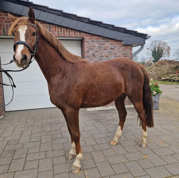 German Riding Pony Gelding for Sale For sale is a stunning German Riding Pony gelding, born in 2022. The horse impresses with its elegant appearance and balanced temperament. He is a dark chestnut with a height of 152 cm. The gelding is healthy, regularly vaccinated and dewormed. He has a promising basic training and is suitable for both leisure riding and competition purposes. If you are interested or have any questions, please feel free to contact me. I would be happy to arrange a viewing appointment.