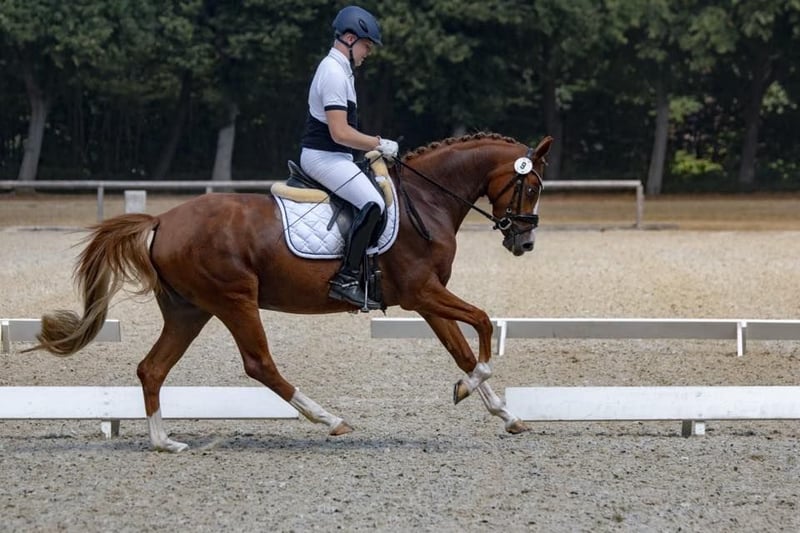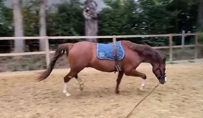Terbofens Quick III stammt aus einer sporterfolgreichen Anpaarung. Er befindet sich seit August in der Ausbildung und lässt sich in allen Gangarten fein und locker reiten. Er lernt sehr schnell und auch das anreiten war total unkompliziert. Quick III ist das perfekte Pony für den großen Dressursport. Auch als Familienpferd könnten wir ihn uns vorstellen, da er sowohl kleine und auch große Reiter gut abdeckt. Wunderschön gezeichnet mit 3 hoch weißen Beinen, sportlich aufgemacht mit herausragenden Gangarten und einem neugierigen aber ausgeglichenen Gemüt, er möchte immer gefallen. Seine hohe Leistungsbereitschaft gepaart mit seinem ruhigen und liebevollem Gemüt machen ihn zu einem Pony, welches uns jeden Tag bei der Arbeit sowie im Umgang sehr viel Freude bereitet. Er ist sehr verschmust. Er hat jetzt eine umfassende Grundausbildung erhalten und kann bei kontinuierlicher Winterarbeit und Konditionsaufbau in Dressurprüfungen eingesetzt werden. Er hat eine hervorragende Arbeitseinstellung und versucht seinen Reiter immer zu verstehen. Seine Geschwister sind hoch erfolgreich im Sport: Terbofens Quick I (im Sport unter dem Namen Grenzhoehes Quattro unterwegs) ist in Dressurprüfung Kl. S* /Prix St. Georg plaziert . Bild Nr. 15 Terbofens Quick II war 4-jährig beim BuCha plaziert, hat 5-jährig die Quaili zum BuCha gewonnen und ist erfolgreich in Dressurpferdeprüfung L** und in FEI-Prüfungen siegreich/plaziert. Bild Nr. 16 u. 17 Terbofens Queen Two bekam ein Stutfohlen und wurde 02.2021 nach Irland verkauft und ist dort siegreich in FEI -Prüfungen. Bild Nr. 18 u. 19 Aufgrund des Ausbildungsstands ist Quick aktuell (noch) nicht für Anfänger geeignet. Er wird direkt vom Züchter nur in sportlich fördernde Hände verkauft. Nicht an Händler oder Schulbetrieb..
