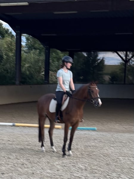 German Riding Pony gelding, born in 2022, in a beautiful bay color. Standing at 153 cm, he is perfectly suited for the ambitious young rider. The pony has been broken in at an age-appropriate level and has a solid foundation in dressage training. Due to his friendly nature and gentle temperament, he is ideal for both leisure riding and competitive sport. A versatile and reliable partner horse with great potential. If interested, I look forward to hearing from you. A trial ride and introduction are possible; this will be charged at €30.