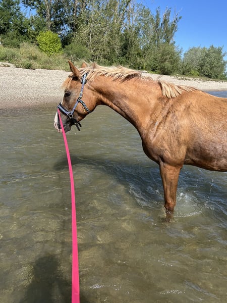 **Sales Advertisement: German Riding Pony Gelding** For sale is a beautiful German Riding Pony gelding, born in 2021. With his elegant chestnut coat and a height of 153 cm, he is the ideal partner for versatile activities. This talented pony gelding shows great potential in eventing and is suitable for both leisure and competition. His friendly and open nature makes him a pleasant companion. He is well-mannered, easy to handle, and already shows promising progress in his training. Whether in the field or in the arena, the gelding is always motivated and ready to learn new things. If you are interested or have further questions, we look forward to hearing from you! Feel free to visit us to get to know this great gelding in person. !!!! Unfortunately, he has been diagnosed with Equine Asthma and therefore needs to be in an allergy-friendly stable!! Currently, his breathing is unremarkable. The price is negotiable, and placement is prioritized over price.