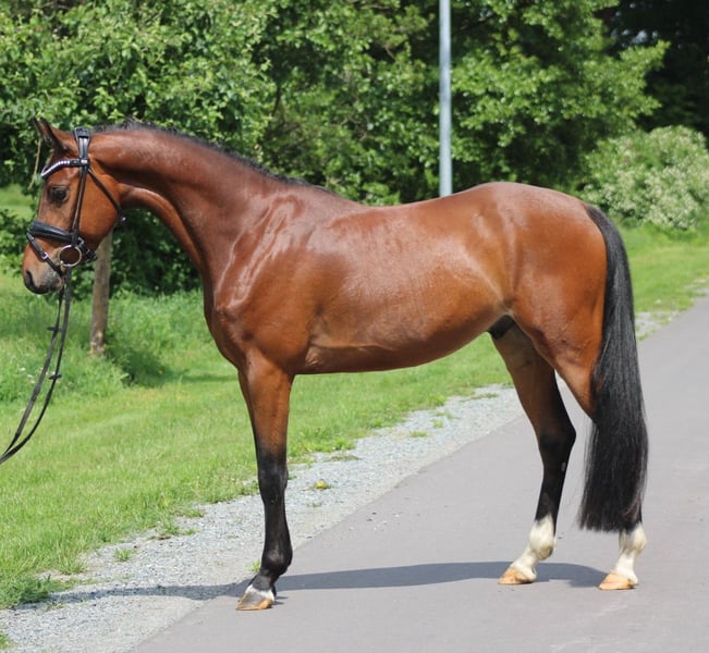 Directly from the breeder, this absolutely stylish pony is for sale. A real eye-catcher that is also very well-mannered to handle. When riding, he shows no vices so far and does a good job every time. Due to his training level (started under saddle), he is not yet being sold as a children's pony. However, he can definitely become one if you show him everything with patience and expertise. Barney is approximately 144 cm tall and has full papers/passport. He has been regularly dewormed and has been presented to the farrier. There is currently no TÜV, but it will be done upon request. Videos are only available via WhatsApp, just message at 016094981968. Unfortunately, inquiries here cannot be answered. Location: 27446 Deinstedt.