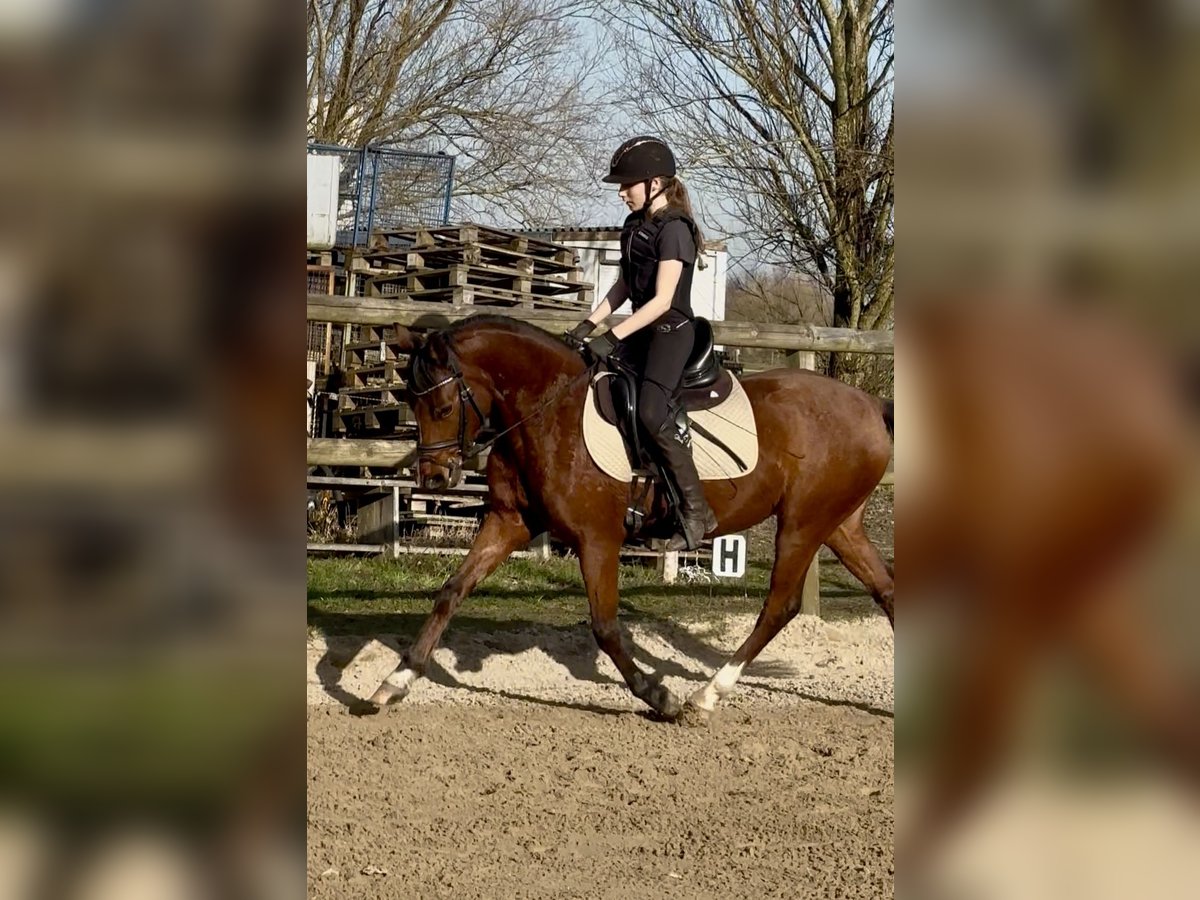 For sale: a promising German Riding Pony gelding, born in 2021. The perfect partner for those seeking a reliable and talented horse for competitive riding. He is easy to ride, suitable even for children to sit on and follow after. His appearance and temperament make him appealing both to ambitious leisure riders and for show jumping or dressage competitions. He has a solid, age-appropriate basic training in dressage and small jumps, and his eagerness to learn sets him apart. TÜV valid until 2025, including back x-ray available. Videos of him being ridden with a child can be sent upon request (dressage + jumping). He is familiar with road traffic, can be ridden without a saddle, and more.