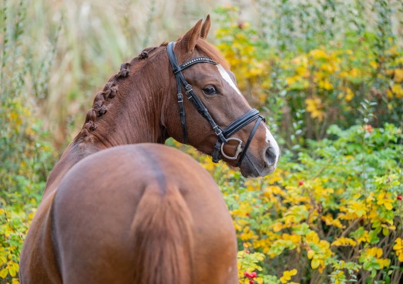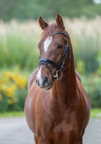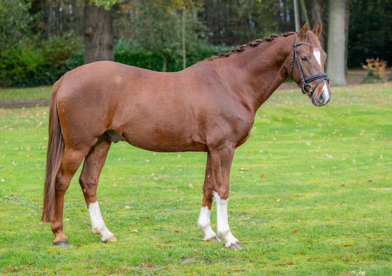 We are offering our 4-year-old dark chestnut gelding, Coeur de la Fleur, affectionately called "Herzi," for sale. He was born on our farm and has been raised in familiar surroundings from day one. Our now 19-year-old daughter has gently started him under saddle herself and has been continuing his training since then. Herzi was licensed at three years old and was gelded earlier this year to facilitate his sale. He comes from the successful breeding line of a well-known breeder family, similar to the famous pony "Konrad," who earned multiple gold medals in dressage at European Championships. This lineage is renowned for its athletic quality and presence – qualities that Herzi clearly demonstrates. In sport, he already has some notable results: - Riding Pony Test: 2nd place - Dressage Pony A (against larger horses): 5th place He is equipped with good basic gaits, possesses a high level of rideability, and has a positive work attitude. Herzi is attentive, expressive, and shows potential to develop further in dressage or FEI Pony classes. He is well-behaved, friendly, and very affectionate. He is turned out daily with other horses on pasture here. We are looking for someone who enjoys nurturing a talented, wonderful young pony and supporting his further development. Only available to a ***** home. If interested, we are happy to provide more information or a video. Please contact us exclusively by phone or WhatsApp at 0151-65247653.